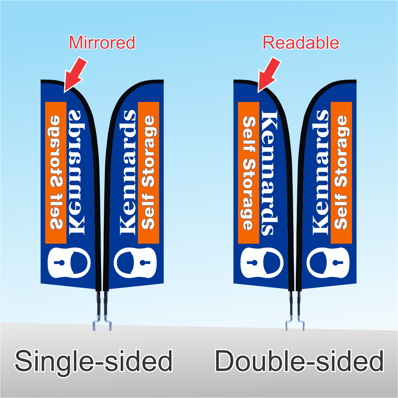 • For double-sided custom feather flags and teardrop banners, we add a blockout layer for clean two-sided prints.