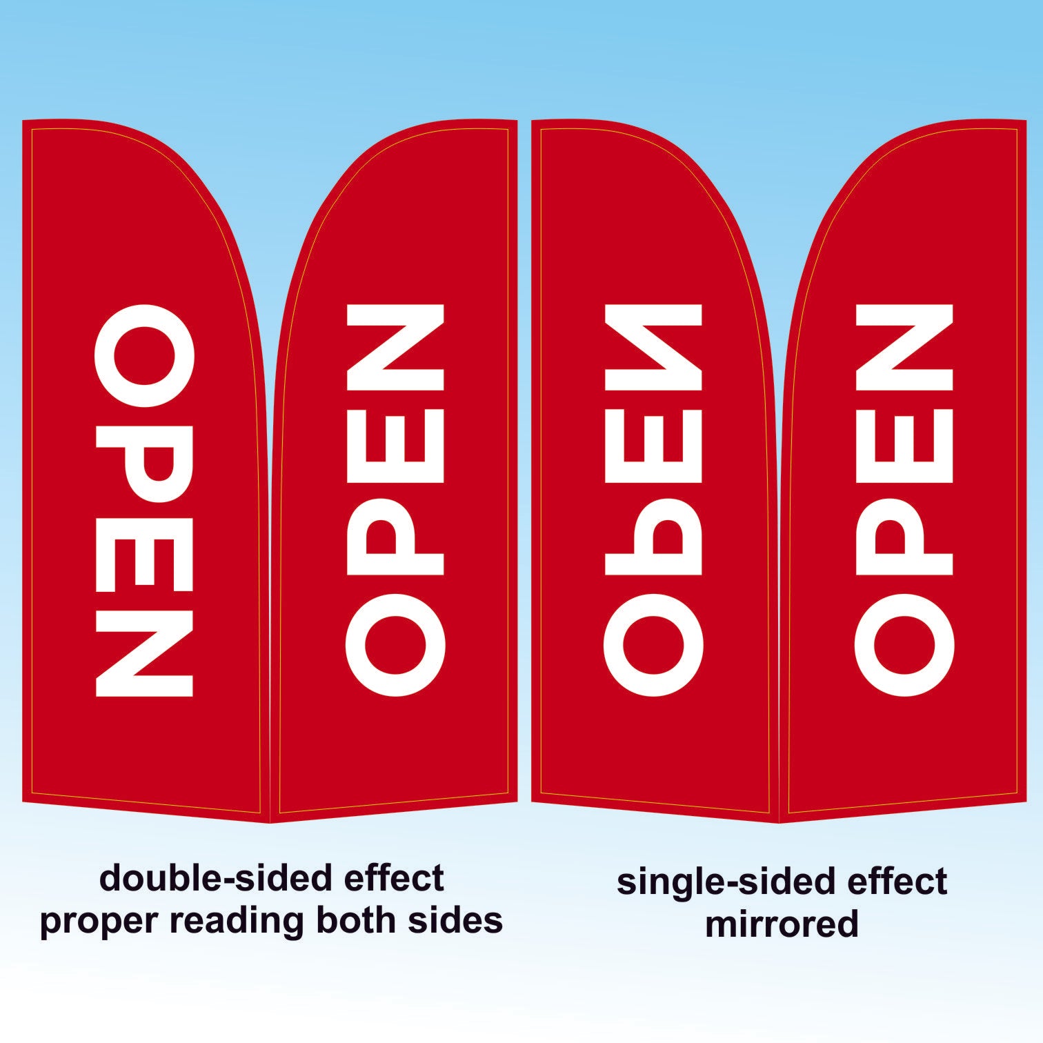 - For double-sided custom feather flags and teardrop banners, we add a blockout layer for clean two-sided prints.